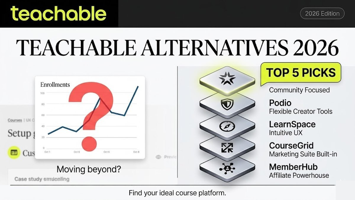 Teachable starts at $39/month with a 7.5% transaction fee. 6 free and low-cost alternatives that let you sell courses with zero monthly fees.