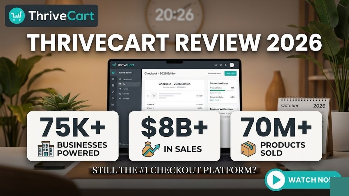 ThriveCart is a one-time-purchase checkout platform built by Josh Bartlett in 2016, now used by 75,000+ creators and businesses globally (ThriveCart homepage, 2026). It handles the transaction layer only — checkout pages, order bumps, one-click upsells, subscriptions, affiliate payouts, and a basic LMS. It does not build your website, run your email list, or drive traffic.